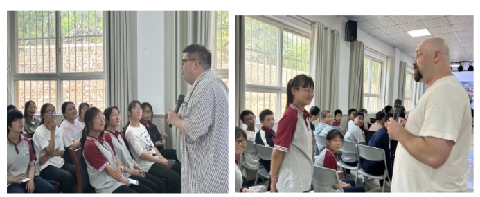 Afterwards, foreign teachers Robin Gilbank and Eli Smith introduced their hometowns, including the customs, cultural traditions and places of interest in Britain and the United States, to the students respectively. The students showed great interest and put forward many questions, to which the foreign teachers gave full answers.