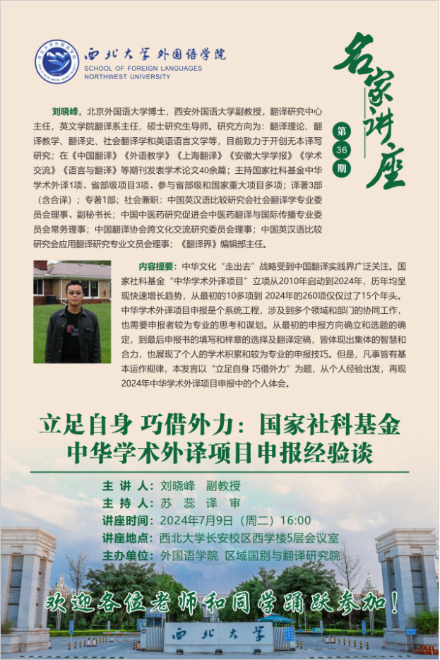 Theme: Experiences Sharing on Applying for the National Social Science Fund’s Chinese Academic Translation Project