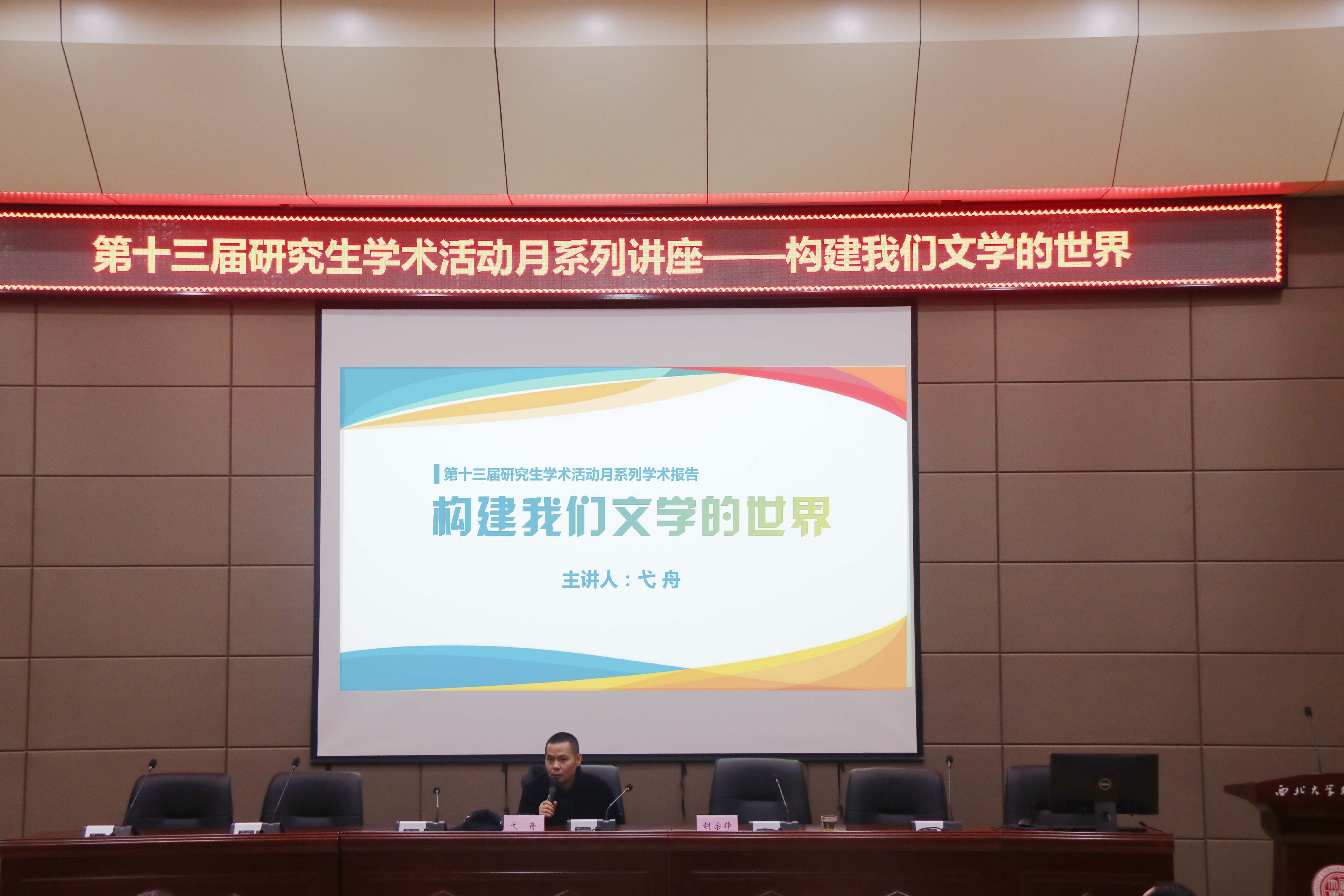 在提问环节,弋舟就“中国了解世界与世界了解中国”、“中国文学与西方文论”、“中国文学外译中的归化和异化”等问题作了精彩的回答。最后,胡宗锋对本次报告作了总结发言,并代表学院感谢弋舟的来访。讲座在热烈的掌声中落下帷幕。undefinedundefined