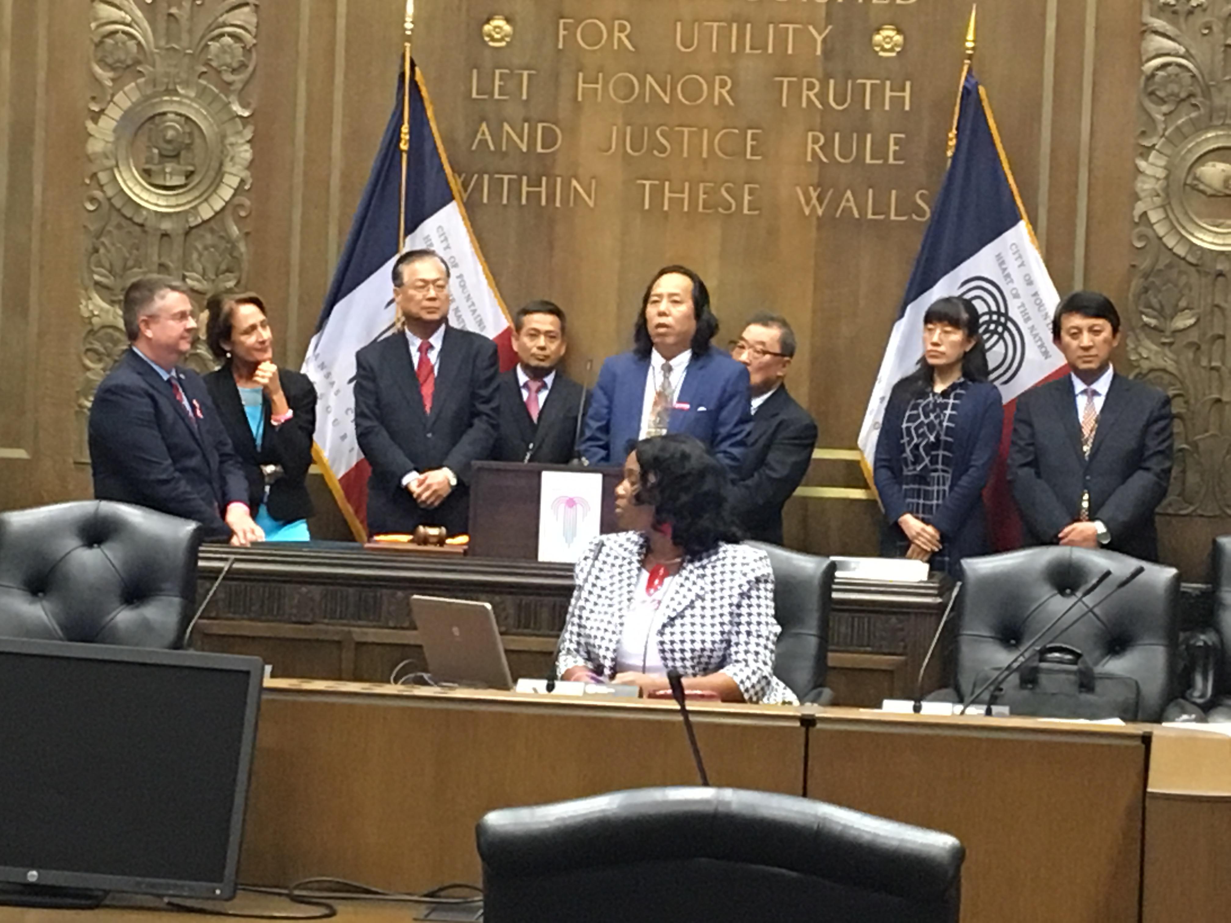 今年是美国作家和记者埃德加·斯诺的著作《红星照耀中国》(又称《西行漫记》)正式发行80周年。近日,第18届埃德加·斯诺研讨会在斯诺的故乡——美国密苏里州堪萨斯城举行。来自美中两国的专家学者、企业代表和政府官员在研讨会上就美中关系以及贸易等话题进行交流。我院院长胡宗锋教授,陕西斯诺研究中心执行副主任袁西玲副教授和陕西翻译协会秘书长、我院教师高敏娜应邀出席本次盛会并发言。胡宗锋教授还在堪萨斯市政厅做了即席演讲。中央电视台记者从美国地方政府官员和相关人士口中,听到的最普遍的声音是——期待中美关系保持双赢。