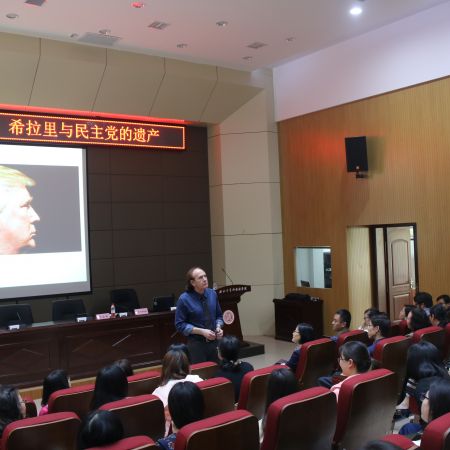 4月24日,美国富布莱特杰出教授、丹麦哥本哈根大学资深教授罗素·邓肯做客我院。在外国语学院第二课堂活动中心做了题为“世界大同的失败:奥巴马、希拉里和民治党的遗产”的报告。此次报告由外国语学院副院长任海棠教授主持,外国语学院师生参与了本次活动。