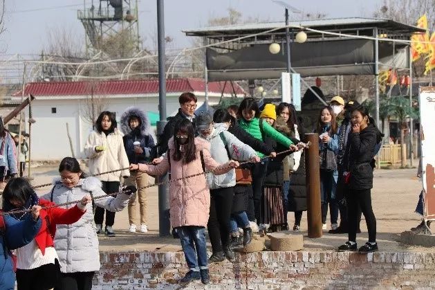 下午同学们在景区内体验了许多趣味活动,例如走钢索,过吊桥,掷铁饼,剥玉米,磨粮食等。同学们对关中的农耕文化有了更深刻的了解。