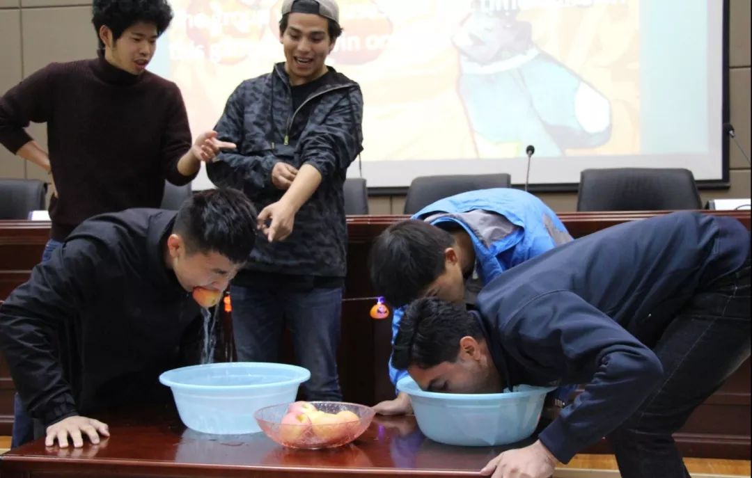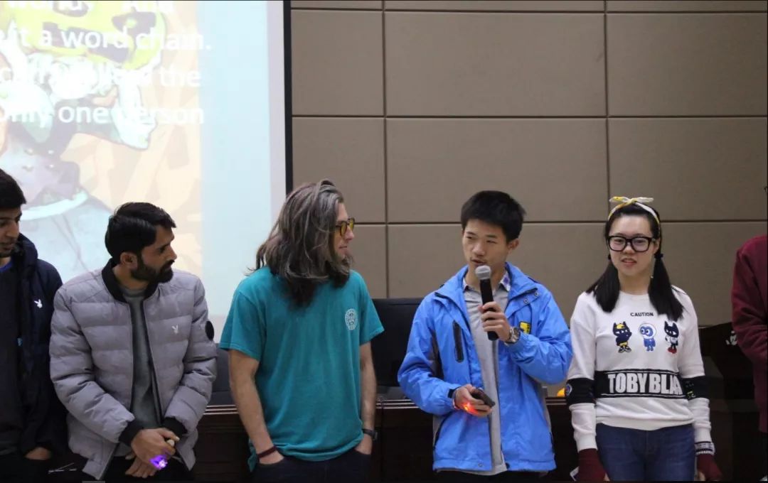 在制作南瓜灯结束后,相继进行了单词接龙、击鼓传花和吹气球这三项游戏。大家都积极参与其中,另有热情的巴基斯坦小哥哥带来了他们家乡的歌曲,场内洋溢着一片欢声笑语,将万圣夜的气氛推向了高潮。最后,外教进行了总结,大家一起合影留念,活动圆满结束。