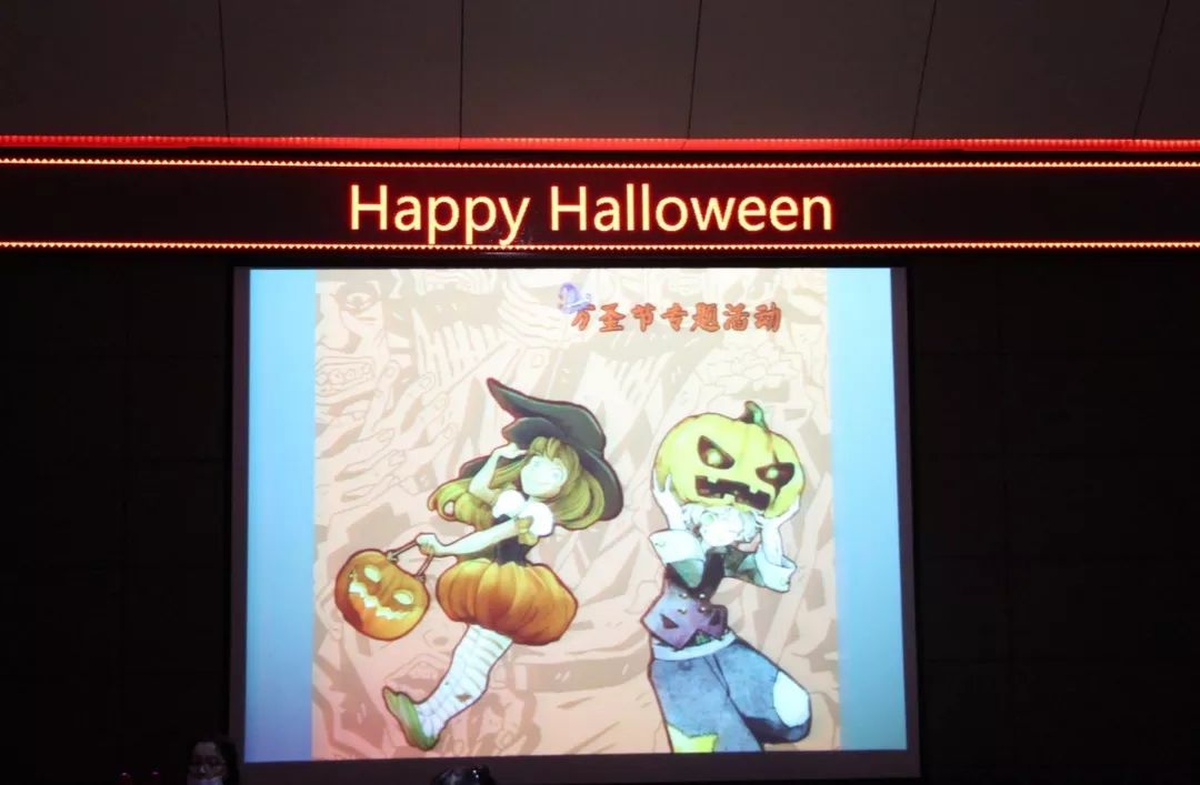 进场后伴随着外国小姐姐的动人弹唱和满堂熠熠闪烁的灯光,万圣节之夜的序幕就此拉开,气氛渐入佳境。首先,外教们上台介绍了万圣节的由来以及关于西方过万圣节的风俗习惯,并向大家分享了他们与万圣节的小故事,让同学们更进一步地了解了万圣节。随后,大家按照开场时的分组准备游戏,有趣的万圣夜游戏正式开始!