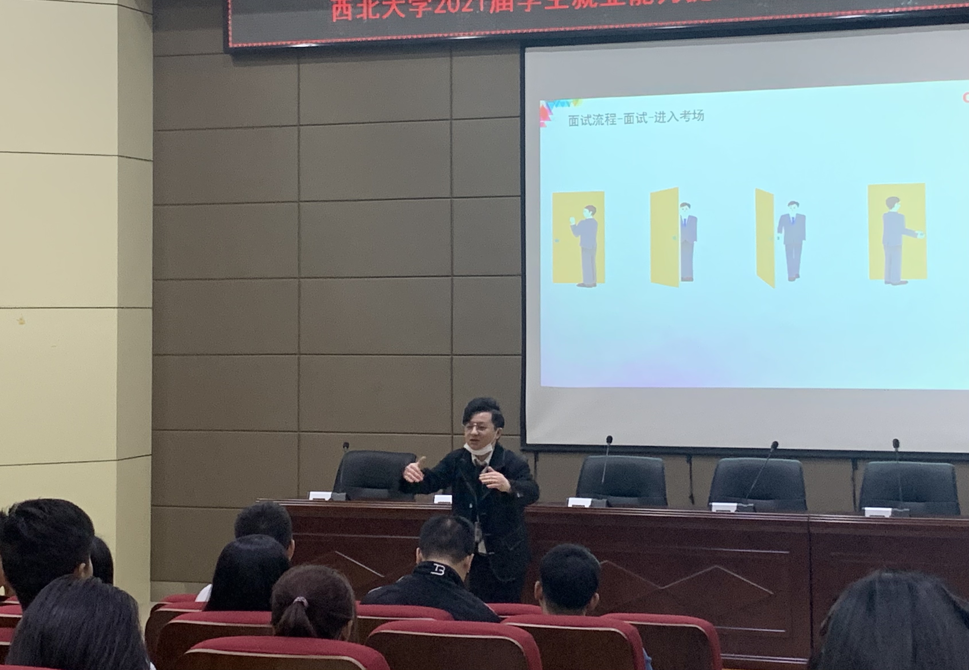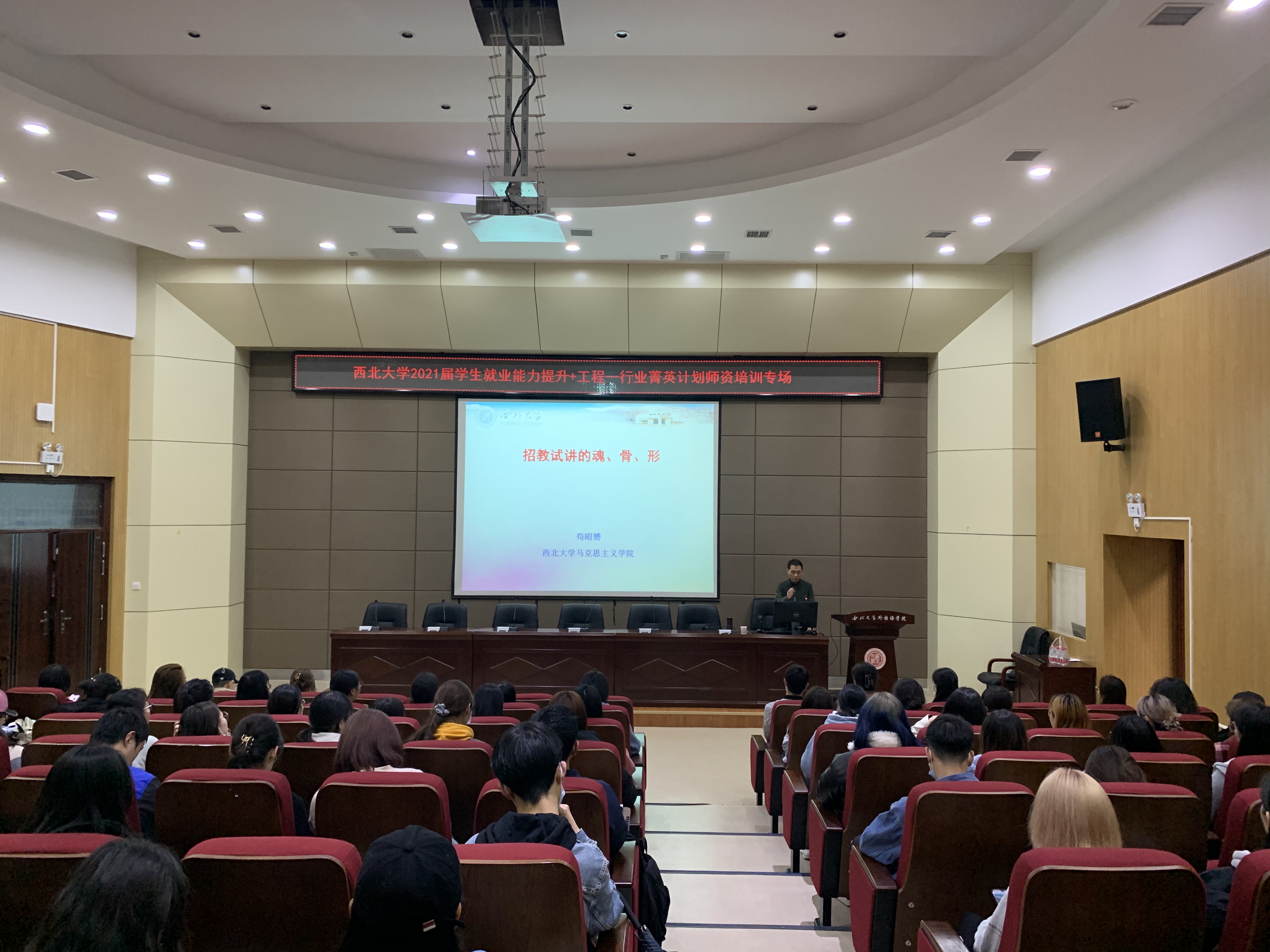 经过对2021届毕业生就业现状的充分调研,在学校学生就业创业指导服务中心的指导下,外国语学院联合马克思主义学院举办了西北大学2021届学生就业能力提升+工程“行业菁英”计划师资培训专场。本次专题培训于3月31日至4月1日在外国语学院第二课堂报告厅顺利举办。专题培训邀请了西北大学马克思主义苟昭赟副教授、外国语学院陈娟博士以及中公教育师资培训师梁俊豪老师,为与会同学带来了三场精彩纷呈的讲座。马克思主义学院党委副书记邵平、外国语学院党委副书记刘建波也出席了本次活动。