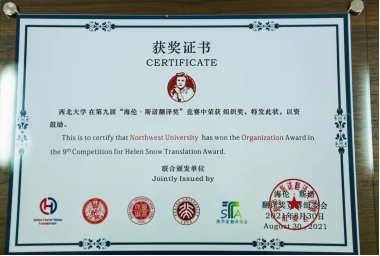 西北大学作为海伦·斯诺翻译奖竞赛的主办单位之一,自2016年以来,连续四次在我院举行大赛颁奖仪式。这是一个别样的中秋,也是一次别样的颁奖仪式。让我们祝贺海伦·斯诺翻译奖竞赛越办越好!