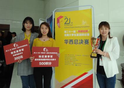 2018年4月28日-30日,由我院教师马莉带队,英语专业2015级牟昶璇同学和2016级白昕可同学在兰州交通大学举办的第21届“外研社杯”全国英语辩论赛华西地区赛中夺得华西赛区季军,获得全国赛晋级资格,将于5月中旬代表西北大学赴京参加全国总决赛。英语系教师宣菁受邀担任此次大赛的独立评委,并获得优秀评委证书。今年也是我校辩手第四次进入华西赛区决赛。祝贺我院教师和同学们再创佳绩!