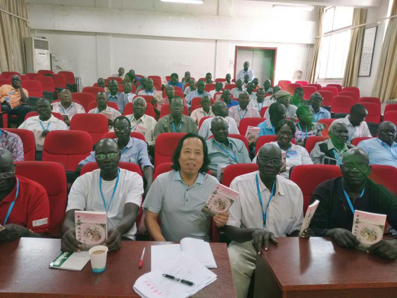 南苏丹国家语言与外语中心司长墨西斯•麦丁、南苏丹约翰•加郎科技大学教授莫约克•凯勒•邓,中南安拓国际文化传媒有限公司总经理王涛,我校国际文化交流学院副院长张银仓、“一带一路”研究院院长李雪梅等相关负责人,以及南苏丹59名课程和教材开发人员参加了开班仪式。
