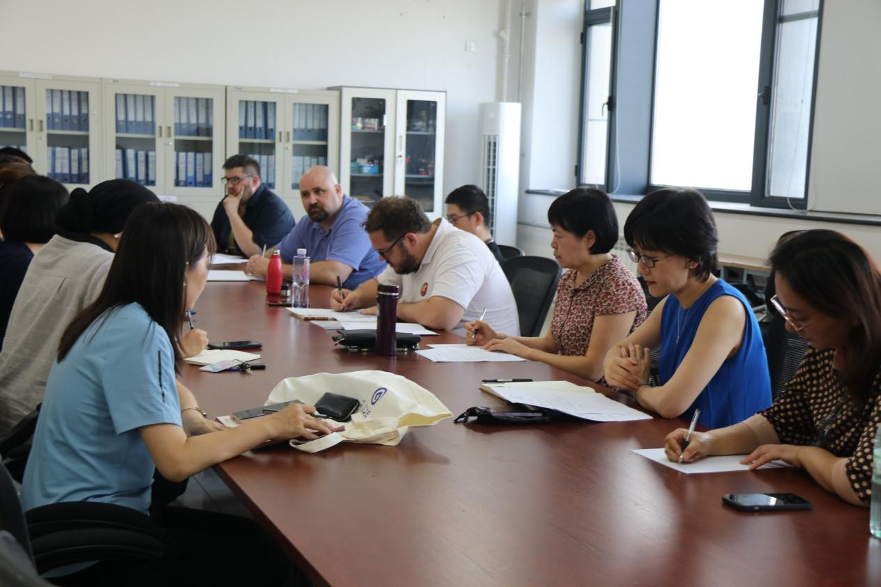 会上,曹若男院长安排新学期外教工作,对外教的教学纪律、听课规则、学术活动与社会服务等做出了明确的要求,强调外教在我院教学工作和学术研究所发挥的重要作用。外教督导Robin Gilbank介绍了上学期的外教听课情况,提出了相应的建议。在问答互动环节,到场外教提出他们在工作中遇到的一些问题,学院领导、系部主任做了认真、细致的解答,并鼓励外教积极参与科研合作、学术交流,为我院的进一步发展做出更大的贡献。