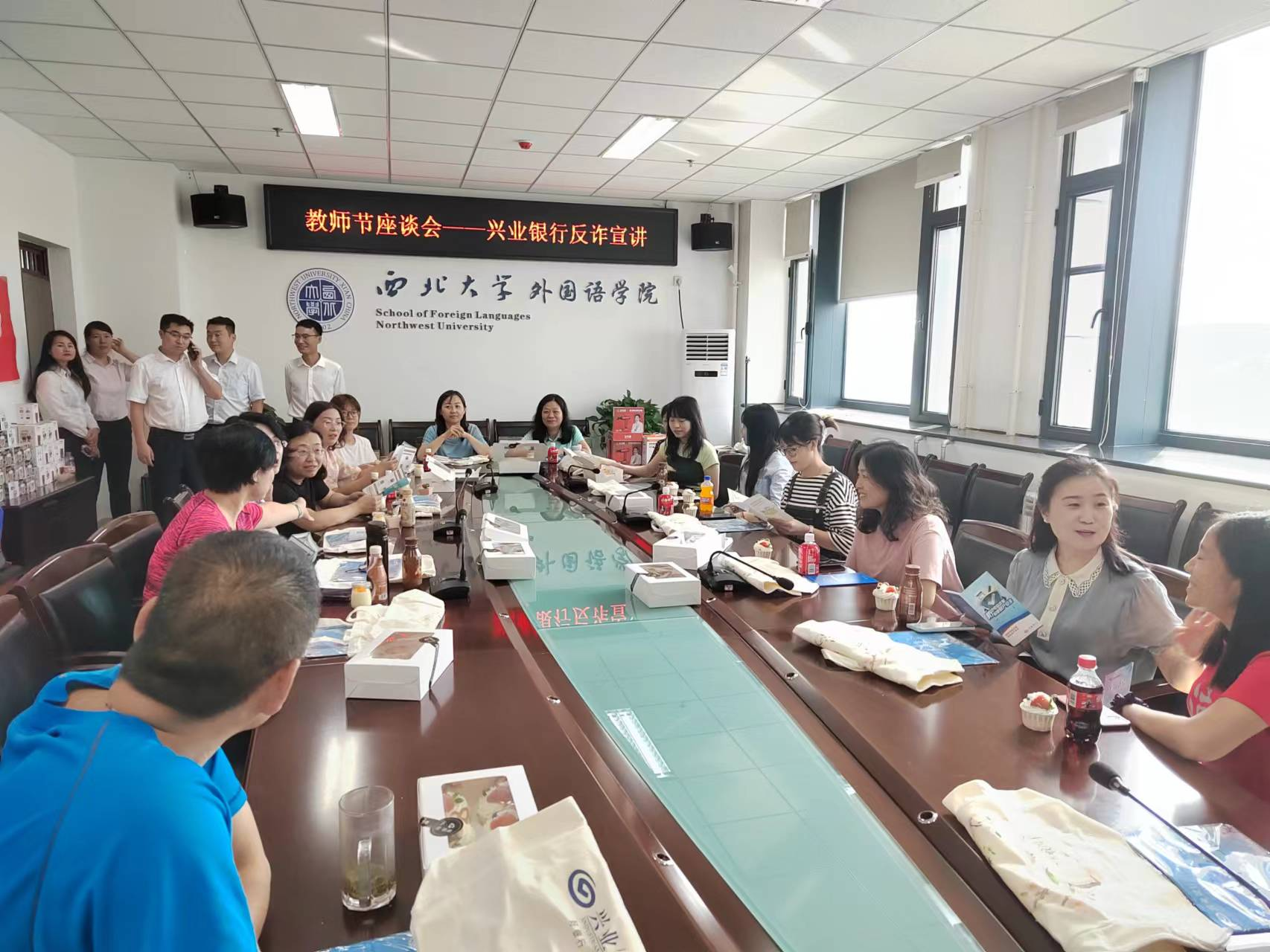 为庆祝第39个教师节,9月13日下午,我院分会联合兴业银行举办了“教师节座谈会——兴业银行反诈宣讲”活动。二十多名师生代表参加了本次座谈会。