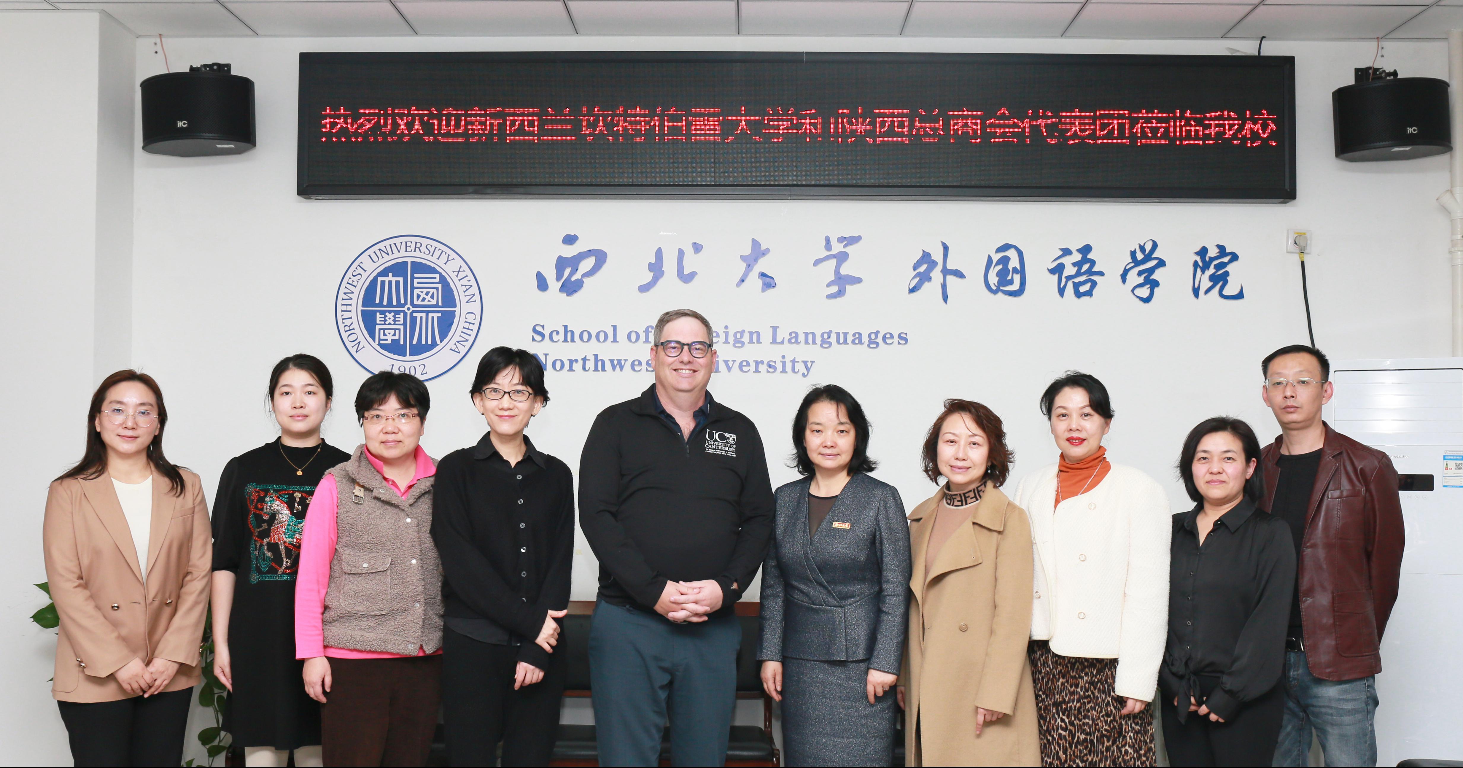 2023年11月21日下午,新西兰坎特伯雷大学国际学院院长Ian McDonald、陕西新西兰总商会会长赵芳一行到访我院,在西学楼五层会议室举行了会晤,就教育合作、国际友人研究等议题进行了深入交流。本次活动由陕西省人民对外友好协会牵线、西北大学国际合作部协调,省友协美大部一级巡视员宋明、西北大学国际合作部部长任蕙莲以及我院院长曹若男出席了会议。