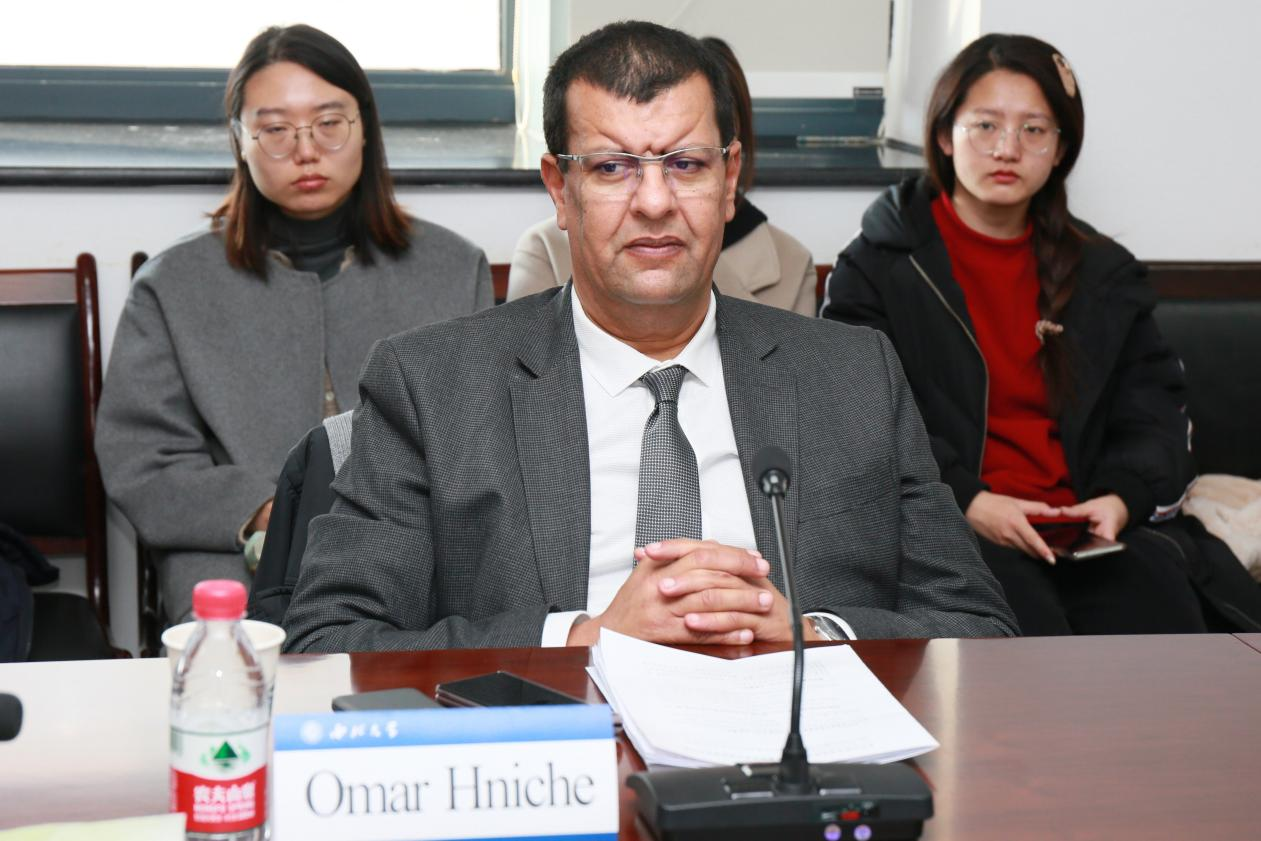 2023年12月4日下午,摩洛哥学术代表团莅临我院就区域国别研究相关议题展开座谈。代表团一行五人,由摩洛哥穆罕默德五世大学主管科学研究副校长奥马尔•哈尼什带队,成员包括穆罕默德五世大学法律、经济与社会学院萨莱校区副院长穆斯塔法•马什拉菲,穆罕默德五世大学法律、经济与社会学院萨莱校区法律系前主任德里斯•塞非阿尼,穆罕默德五世大学非洲研究所教授萨马尔•哈姆利什和阿卜杜勒-马立克•阿萨迪大学法律、经济与社会学院教授拉希德•侯代圭。座谈会由曹若男院长主持,我院北非研究团队全体教师和国别与区域方向研究生参加了座谈。
