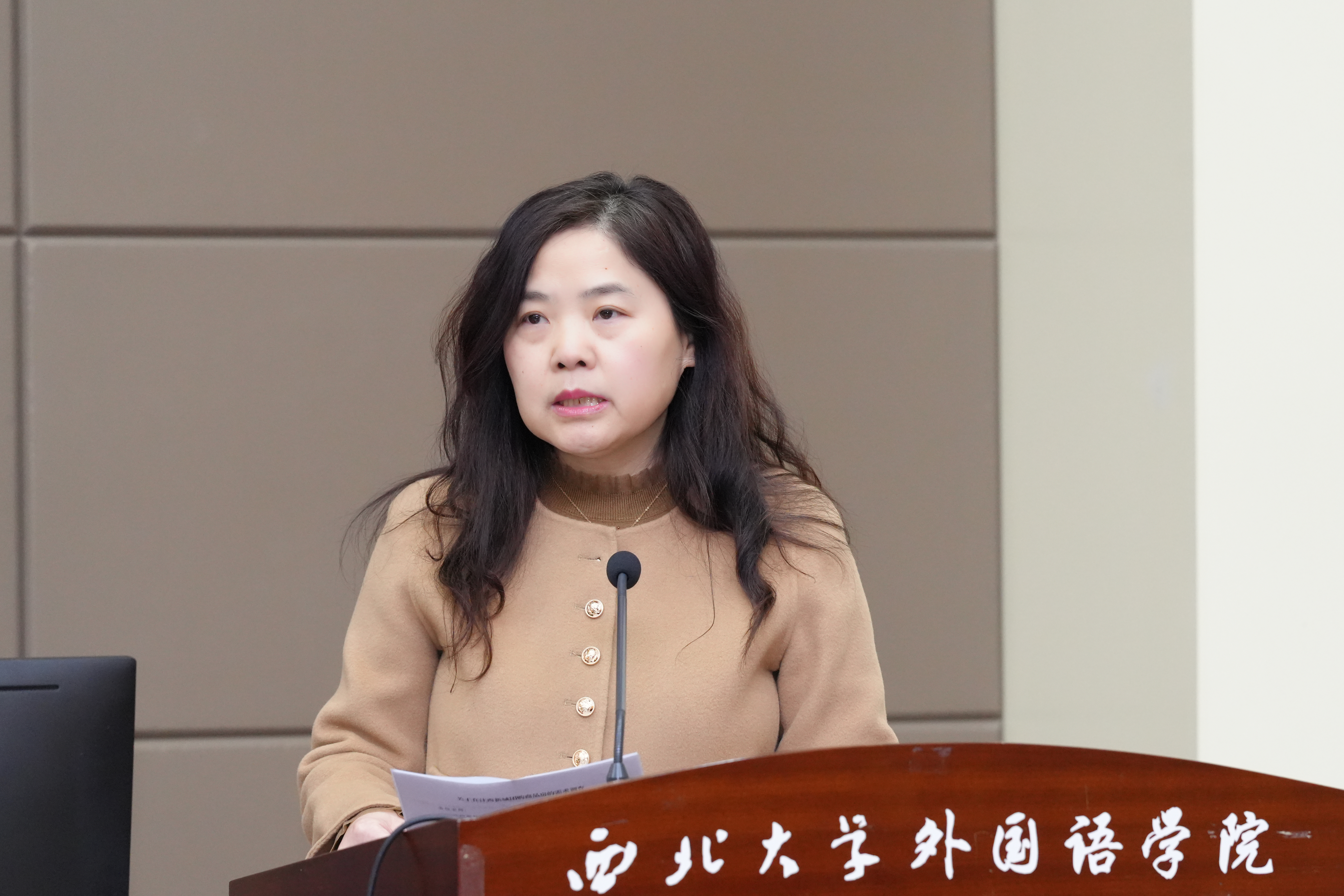 院长曹若男详细通报学院2024年度教职工考核情况,深入分析学校现阶段教学科研重点任务与未来发展方向。她表示,西北大学学科发展格局正处于深刻变革期,学院面临诸多机遇与挑战。为此,学院将搭建资源共享平台,为助力教师成长,支持教师参与科研团队,攻克科研难题。此外,曹院长就教师关注的个人发展路径、奖励绩效分配方案等问题进行详细解读,回应教师关切的重点工作,凝聚发展共识,激励全体教职工为学院发展贡献力量。