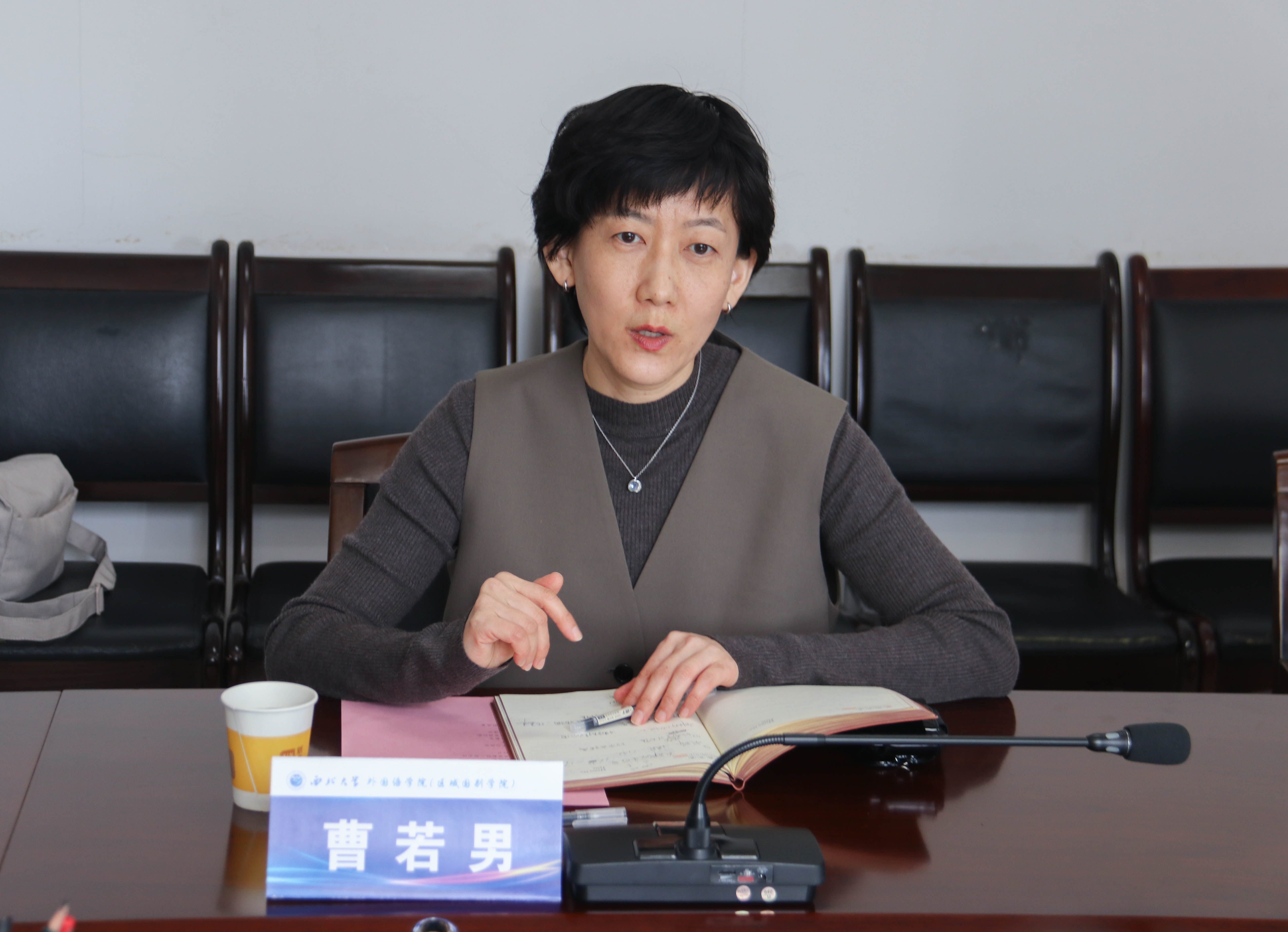 曹若男院长首先对西北师范大学外国语学院一行的到访表示热烈欢迎。她简要介绍了我院的系部设置和发展概况,着重分享了大学英语在多学科融合背景下的教学探索与实践成果。她指出,在学校全面实行学分制的背景下,我院大学英语教学围绕“以学生为中心”的理念,不断优化课程结构,探索多样化的教学模式,推动教学改革稳步前行。