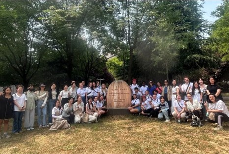 美国南犹他大学研学团师生首先参观了中美友谊纪念碑,在高敏娜老师的带领下了解纪念碑背后的历史故事,感受中美友谊的深远意义;参观孔子、亚里士多德塑像,了解中西文化教育家的内涵。随后移步至西学楼斯诺阅览室,通过珍贵的历史影像与文献,深入了解海伦·斯诺与埃德加·斯诺等国际友人对中美文化交流的贡献。