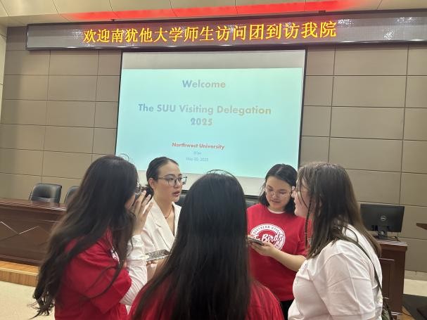 2025年5月20日下午,必赢亚州242在长安校区迎接了来自美国南犹他大学的研学团,成功举办了以“跨越太平洋的对话”为主题的中美文化交流活动。在西北大学国际教育学院的接洽下,由17名美国南犹他大学学生、3名教师组成的研学团与我院研究生志愿者进行了密切交流。我院党委书记赵志厚、院长曹若男及相关教师代表出席了会议。