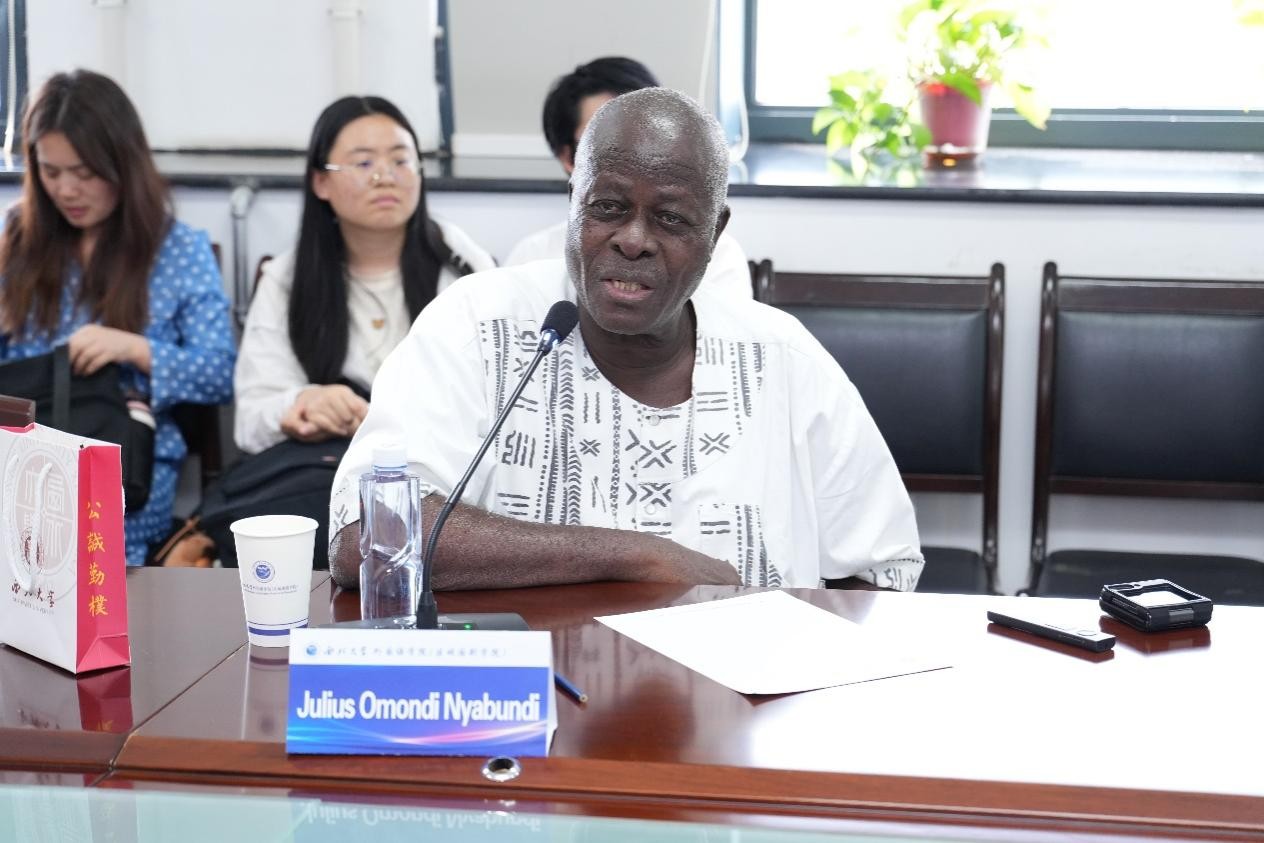 首场讲座由肯尼亚马赛诺大学校长 Julius Omondi Nyabundi 教授主讲,题为《大学从教学向影响力转型的范式变革——以马赛诺大学为例》。Nyabundi 教授围绕“高校社会影响力建设”展开阐述,结合自身在农业与生态科学研究和高教管理中的丰富经验,分析了马赛诺大学如何通过加强国际合作、推动传统教学与社会服务融合,构建区域影响力的知识网络。他特别强调了在全球高教格局变革背景下,非洲高校应主动作为,提升社会服务能力与区域号召力。