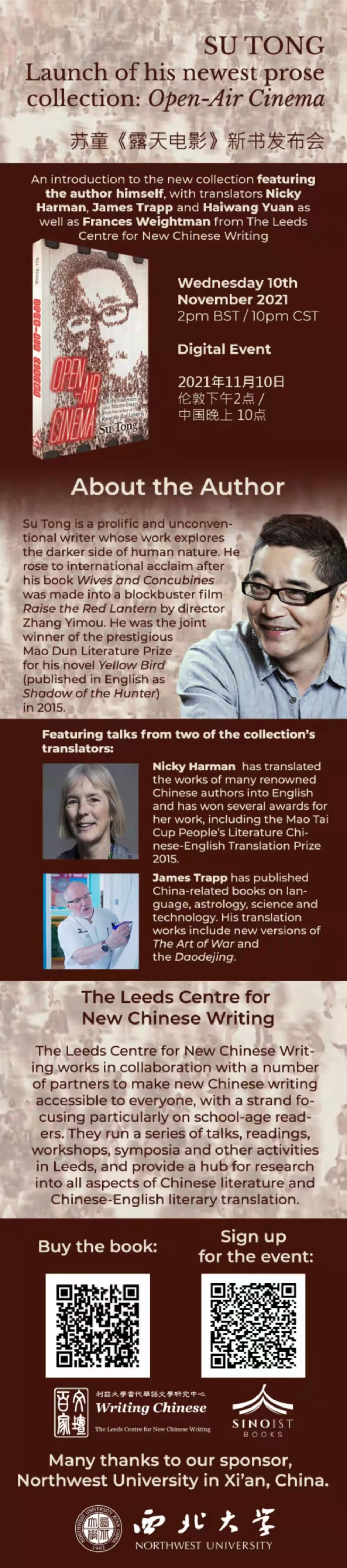 2021年11月10日晚10.00将在第二课堂举办苏童《露天电影》新书发布会!