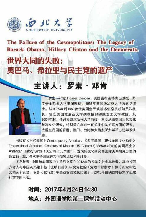 学院定于2017年4月24日(周一)下午14:30召开《世界大同的失败:奥巴马、希拉里与民主党的遗产》讲座,邀请各位老师参加。